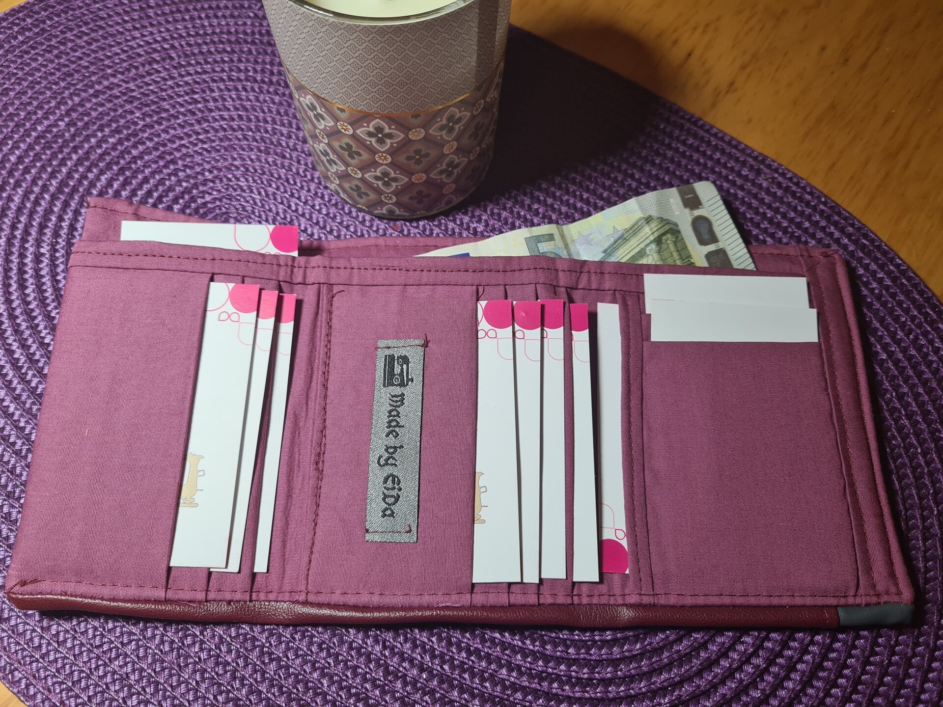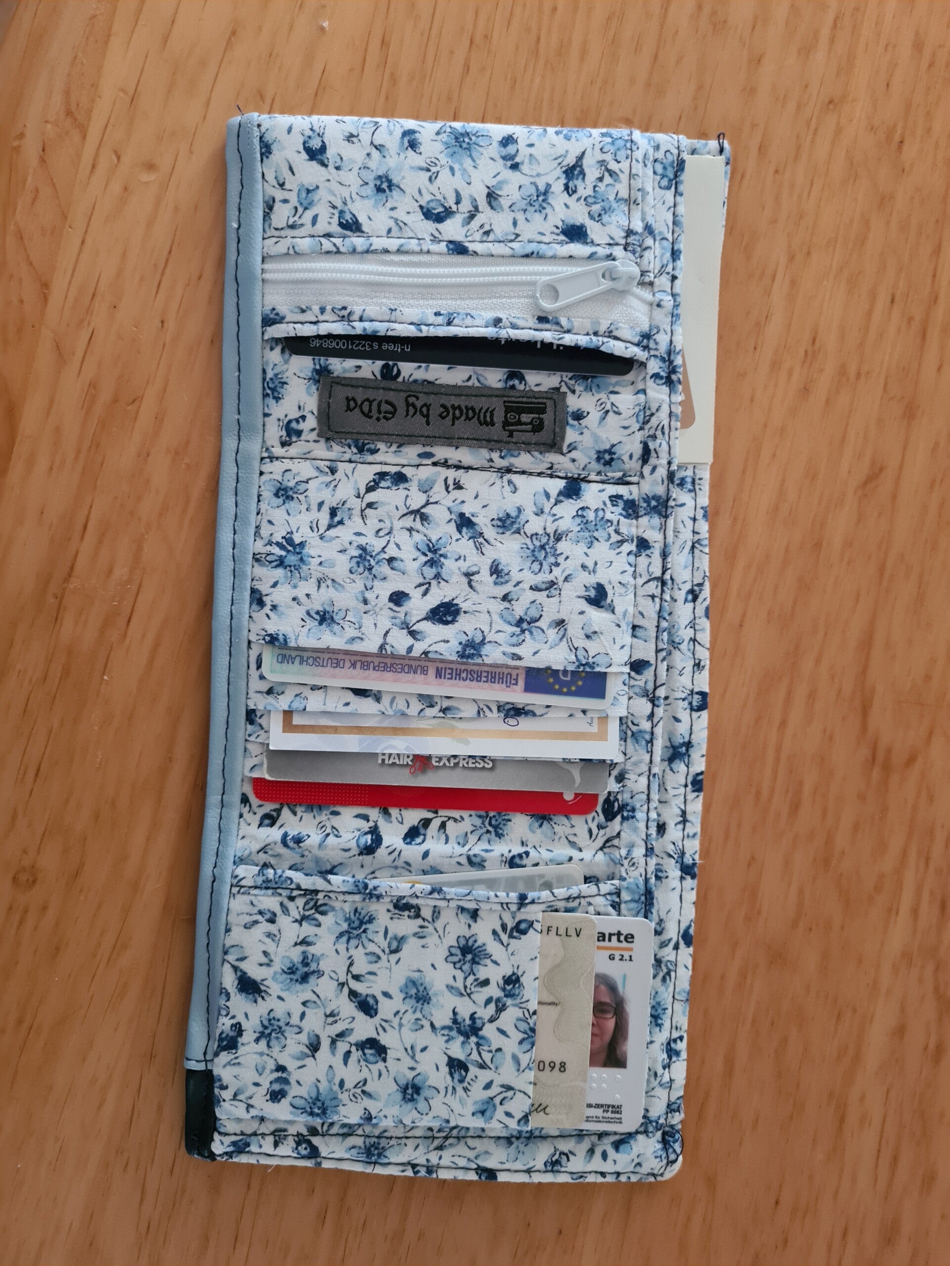 Dies wunderschöne praktische Brieftasche fertigte ich gern für dich in Handarbeit. Sie besitzt 6 Kartenfächer + Fächer für weitere Karten, davon ein größeres für zb das Bonusheft. Außerdem hat sie ein kleines und ein großes Geldfach, sowie ein mit Reißverschluss versehenem Kleingeldfach.