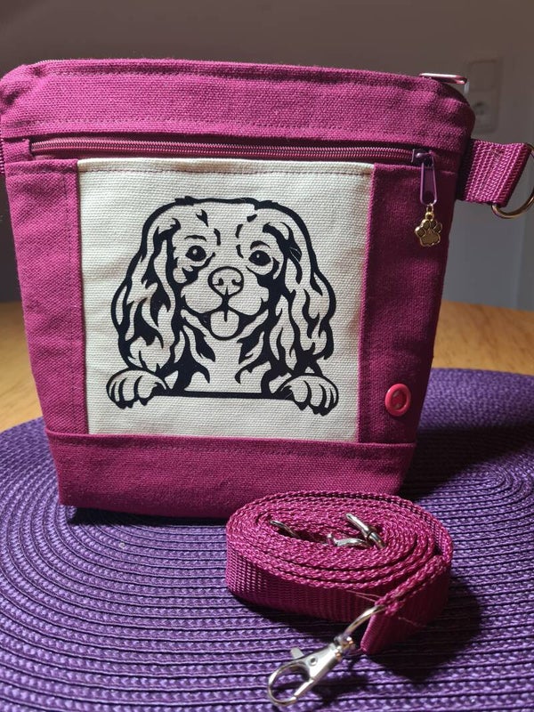 Die praktische Tasche ist für die kleinen Dinge die man beim Gassigehen dabei hat. Leckerlies, Kotbeutel, Handy oder auch die Geldbörse und sonstige Kleinigkeiten passen hier rein.