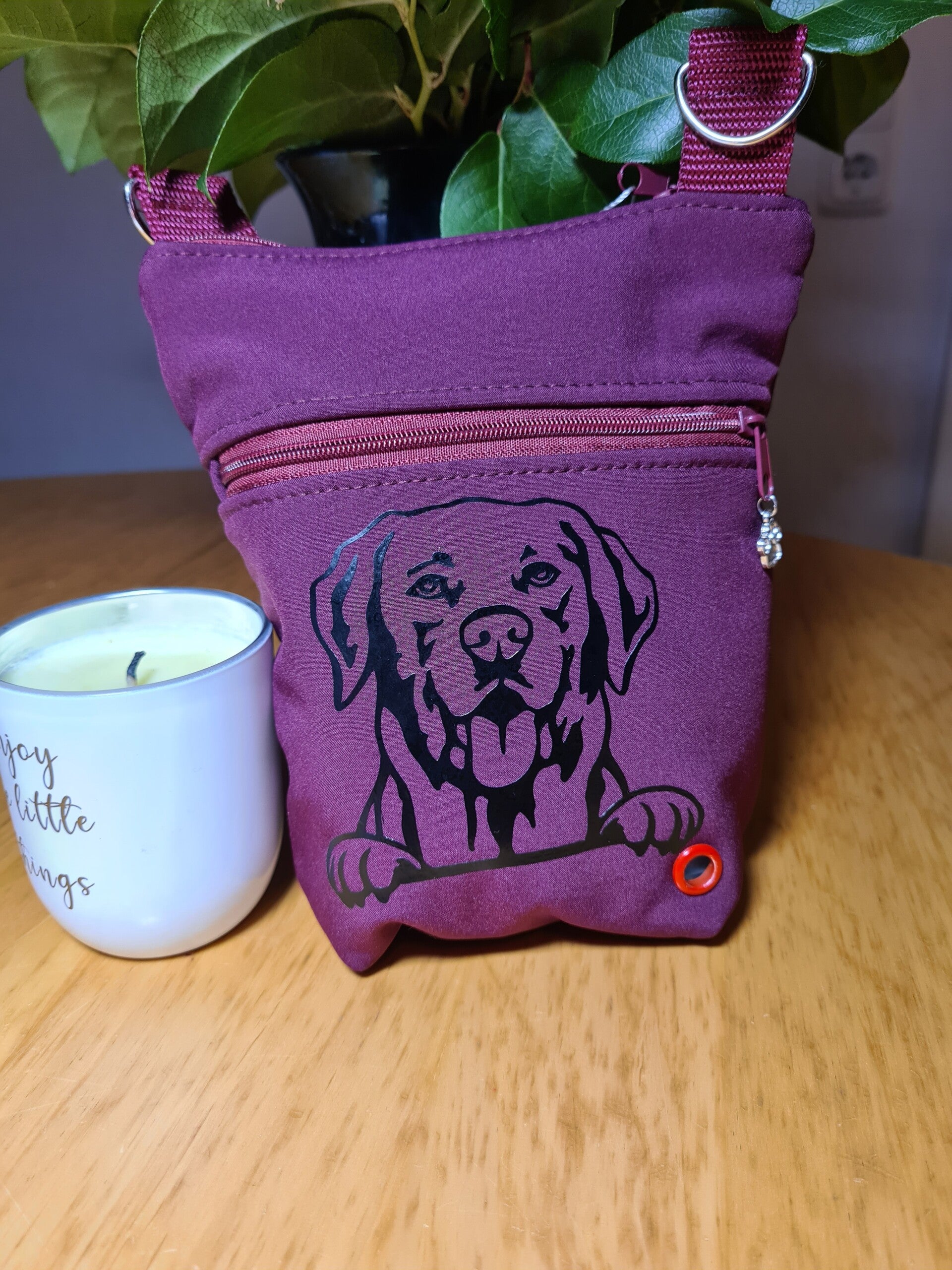 In der Haupttasche kannst du dein Handy, Schlüssel, Geldbeutel und/oder Leckerlies verstauen. In die vordere Tasche ist eine Öse zur unkomplizierten Entnahme von Kotbeuteln integriert.