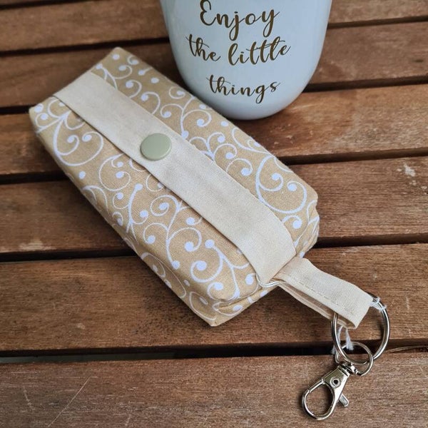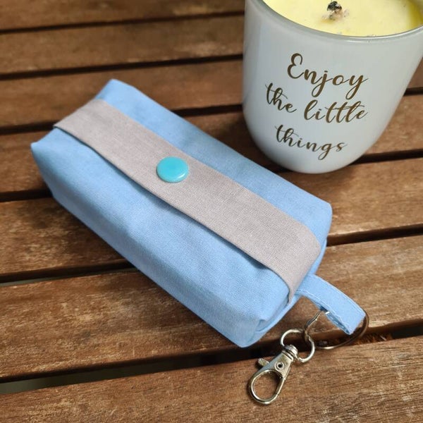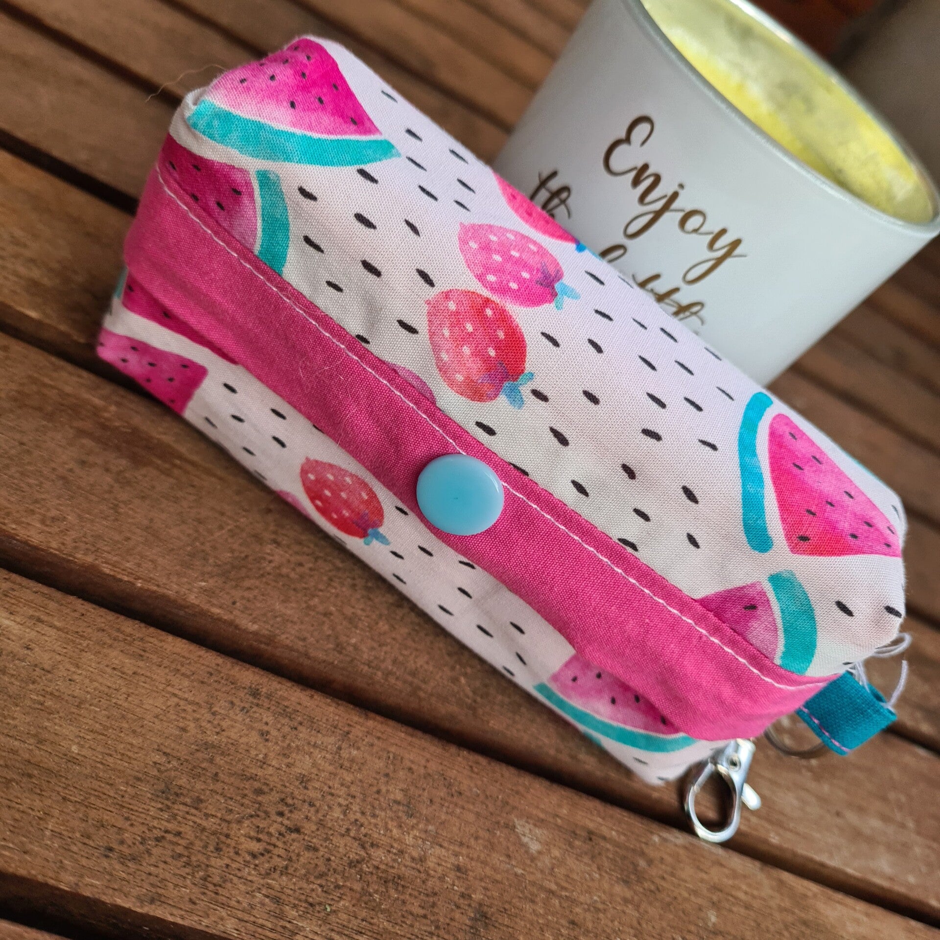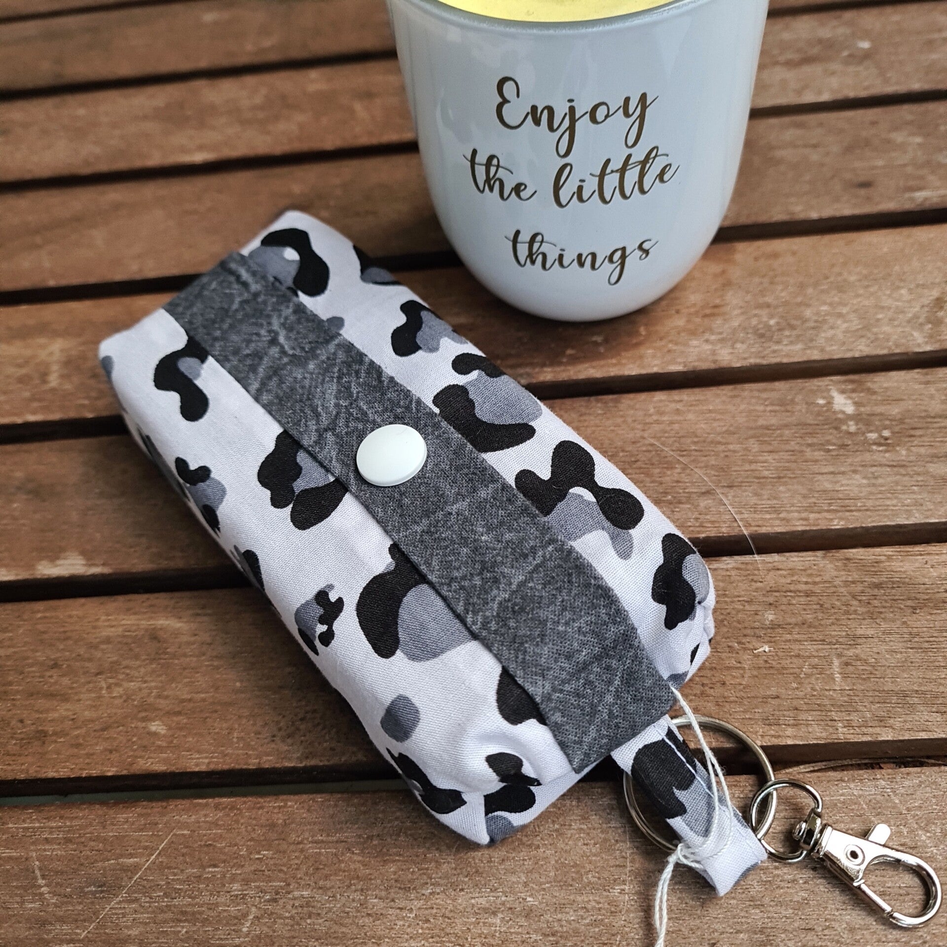 Tatüta mit Karabiner – viele verschiedene Motive - Handgemachte Taschentüchertasche mit Knopfverschluss
