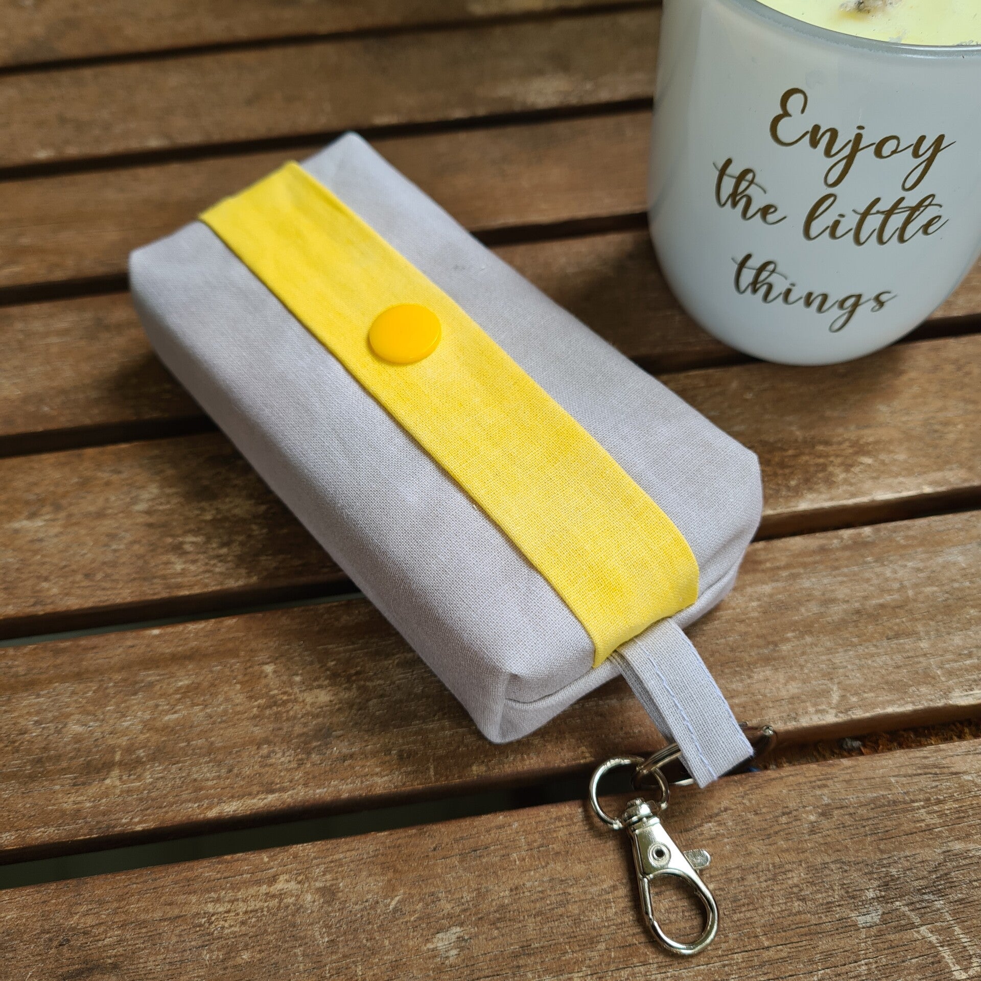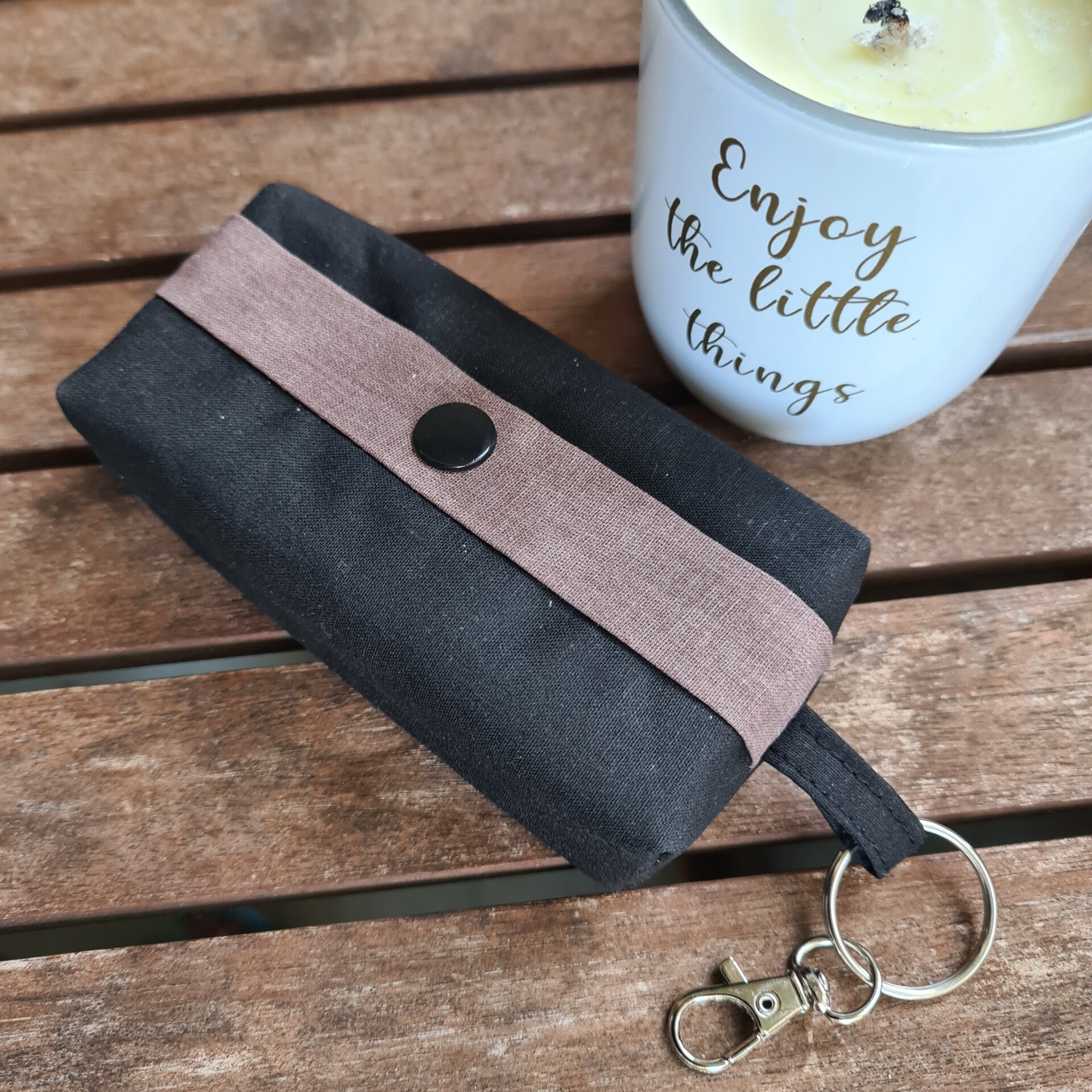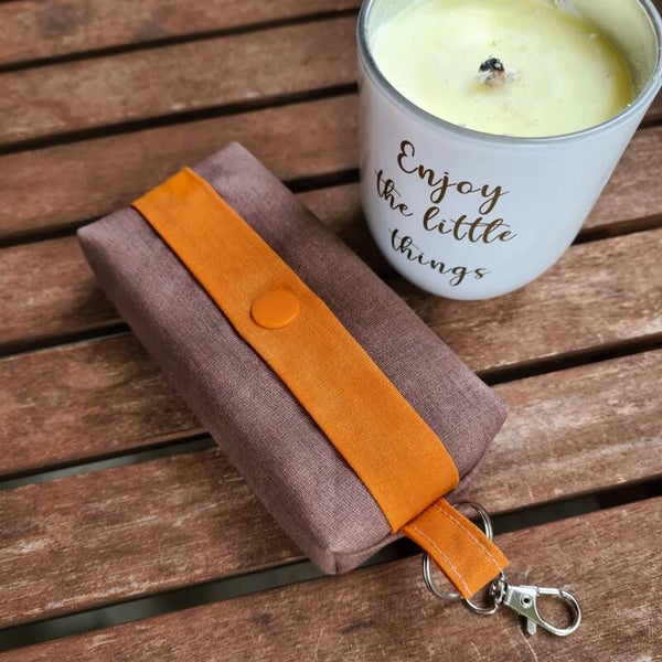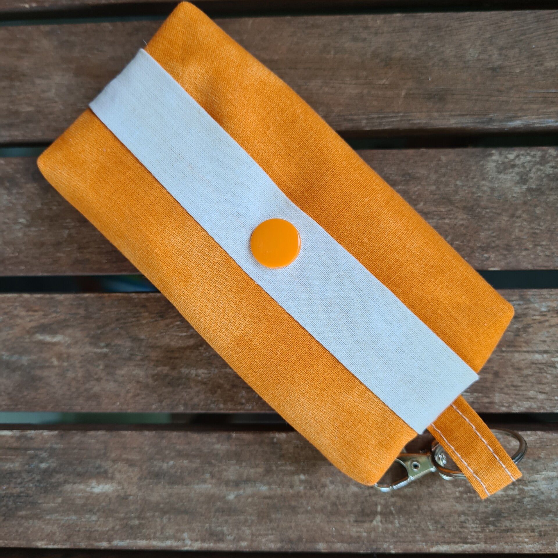 Unsere handgemachte Taschentüchertasche – liebevoll „Tatüta“ genannt – ist der praktische und stilvolle Begleiter für unterwegs. Mit cleverem Karabinerhaken und optionalem Knopfverschluss kannst du sie ganz einfach an Handtasche, Rucksack, Gürtelschlaufe oder Reißverschluss befestigen.