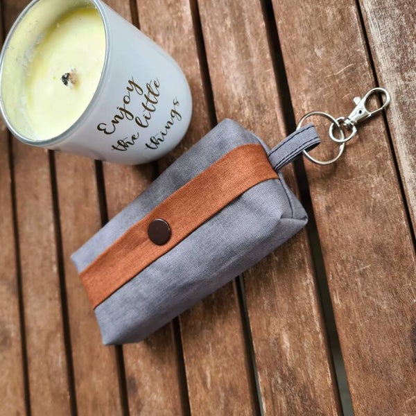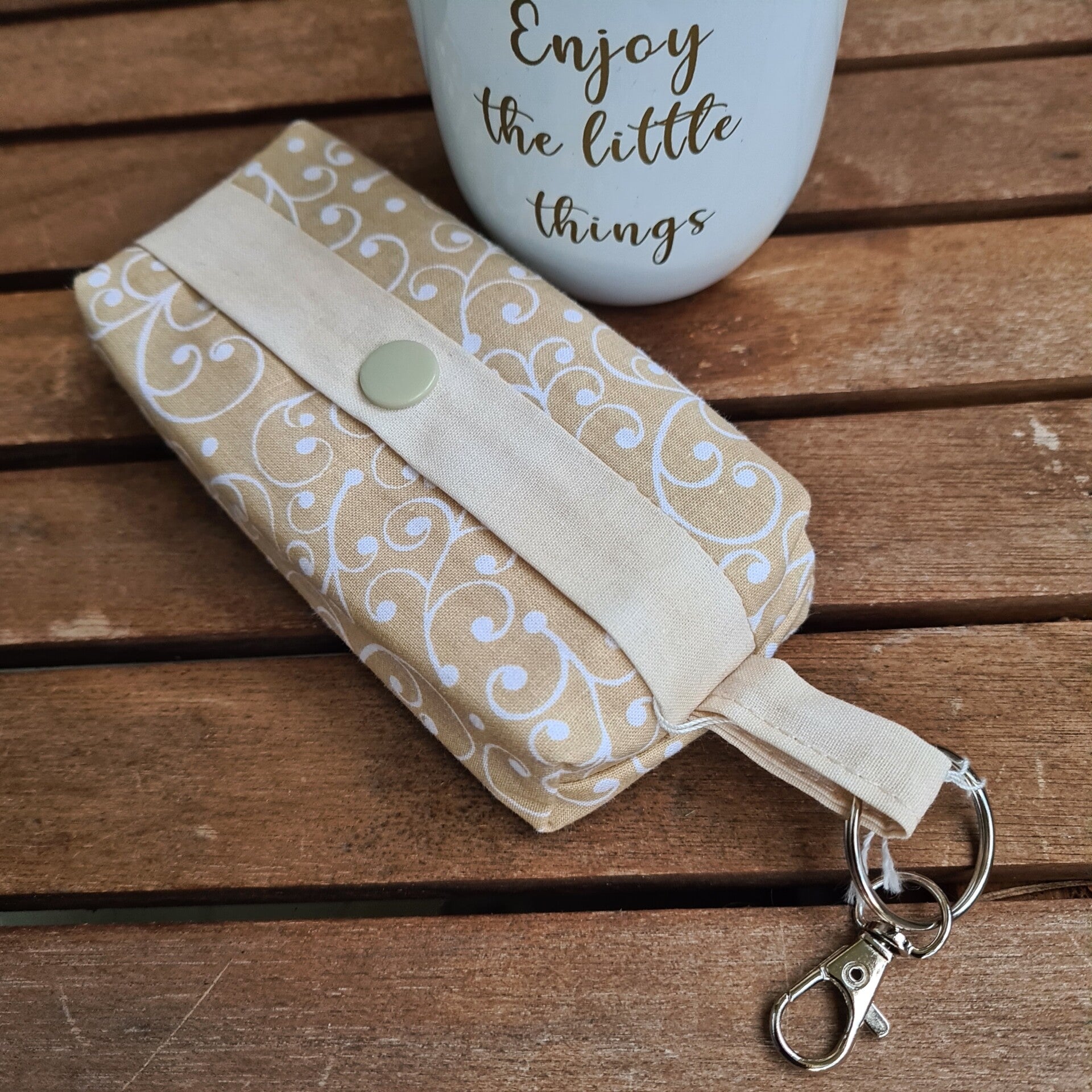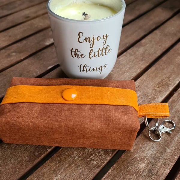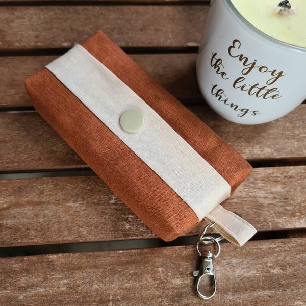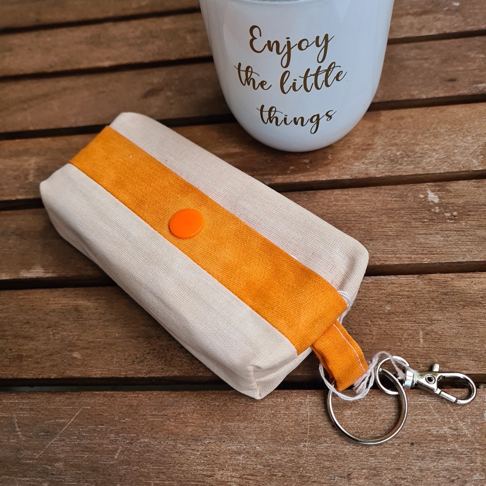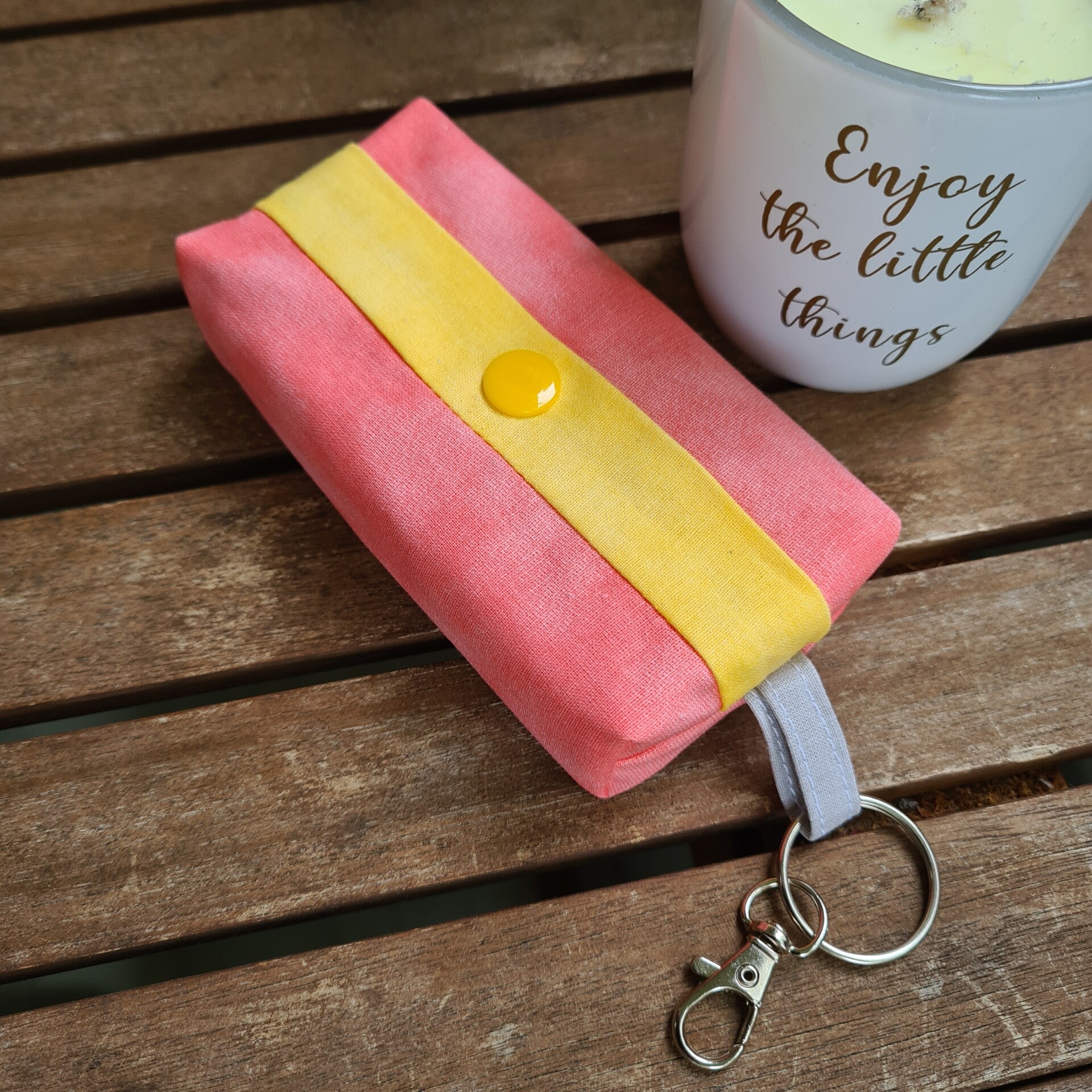 Unsere handgemachte Taschentüchertasche – liebevoll „Tatüta“ genannt – ist der praktische und stilvolle Begleiter für unterwegs. Mit cleverem Karabinerhaken und optionalem Knopfverschluss kannst du sie ganz einfach an Handtasche, Rucksack, Gürtelschlaufe oder Reißverschluss befestigen.