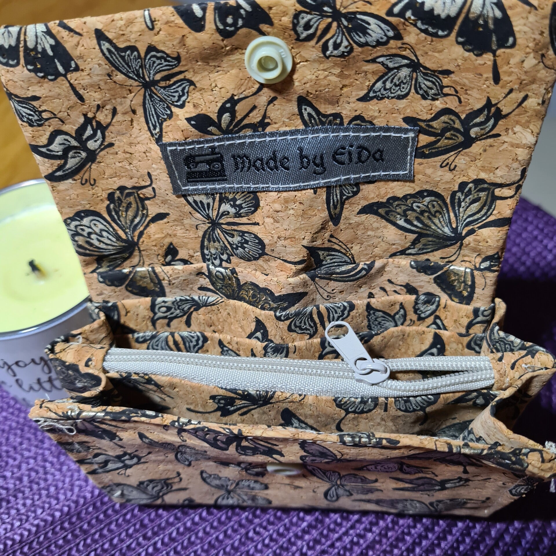 SEO Keywords: Geldbörse aus Kork, handgefertigte Geldbörse, Korkgeldbörse, Geldbörse mit Reißverschlussfach, Geldbörse mit Kartenfächern, Korktasche, nachhaltige Geldbörse, umweltfreundliche Geldbörse, Geldbörse mit Druckknopfverschluss, kompakte Geldbörse, kleine Geldbörse für den Alltag, praktische Geldbörse für Karten, Geldbörse für Damen, Kork Accessoires, moderne Geldbörse, handgenähte Geldbörse, Kartenetui aus Kork, Geldbörse für unterwegs.