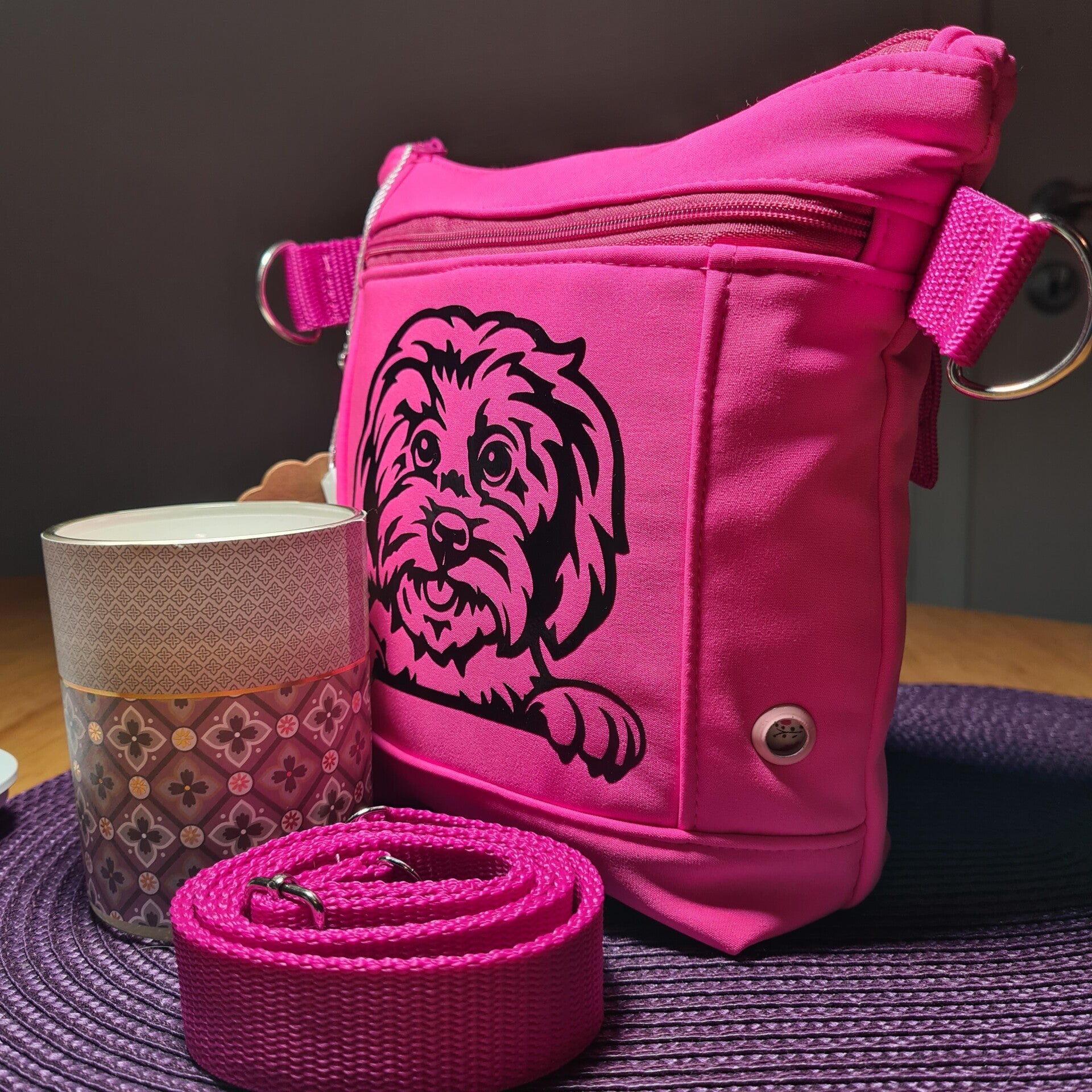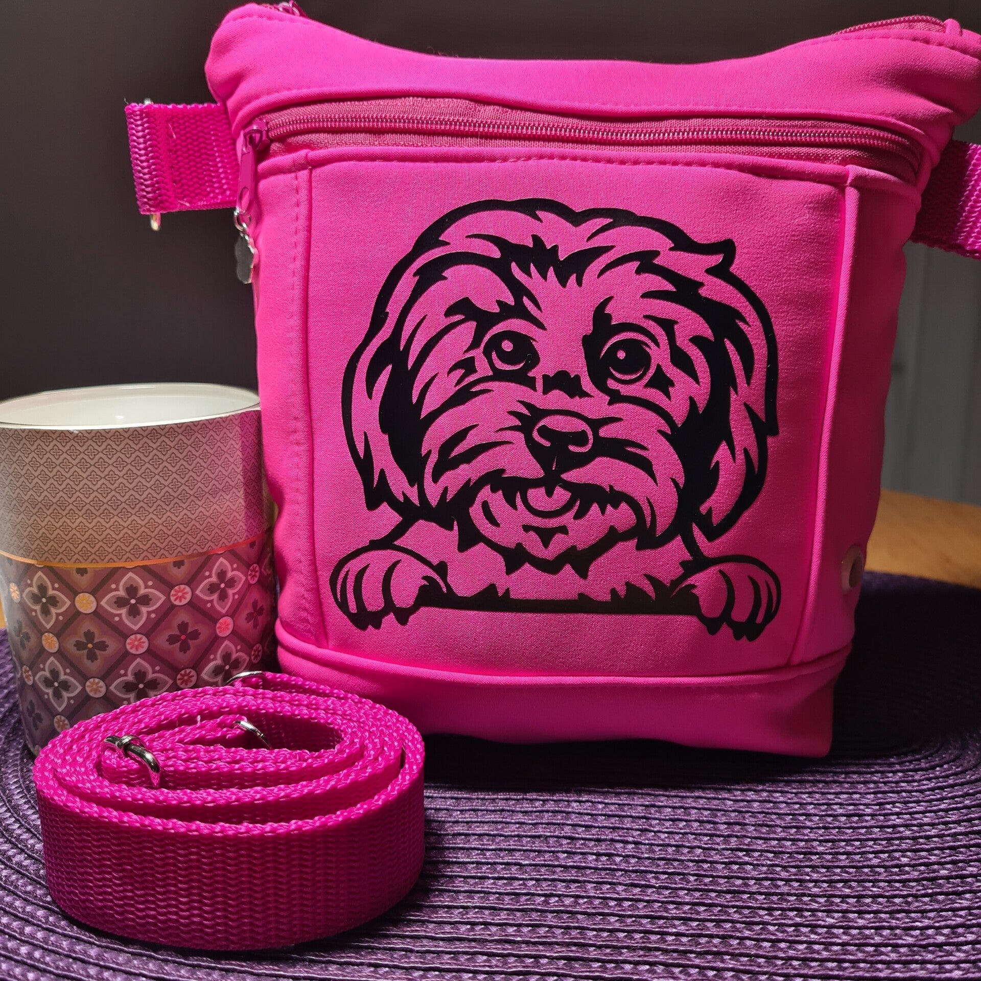 Gassitasche/Gürteltaschse/Schultertasche für die kleinen Dinge die man beim Gassigehen dabei hat. Leckerlies, Kotbeutel, Handy oder auch die Geldbörse und sonstige Kleinigkeiten passen hier rein.