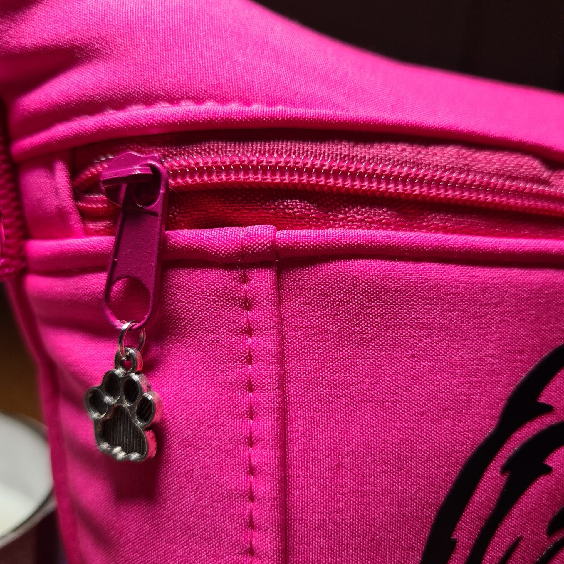 Verschlossen wird sie mit einem Reißverschluss am Hauptfach. Vorne an der Tasche befindet sich eine weitere Reißverschlusstasche mit Öse für Kotbeutel/Leckerchen oä. Alle wichtigen Dinge fürs Gassigehen finden Platz in der Tasche.