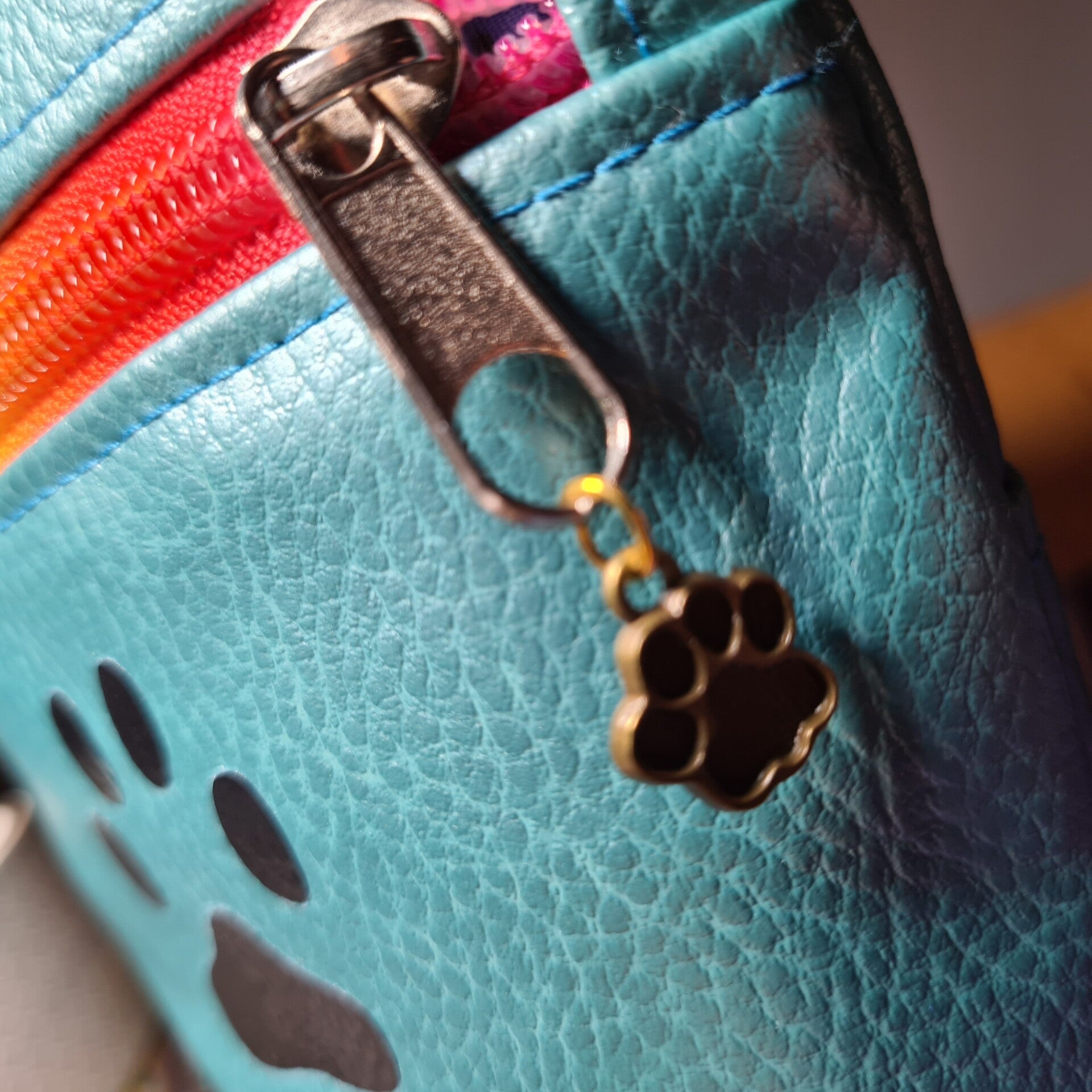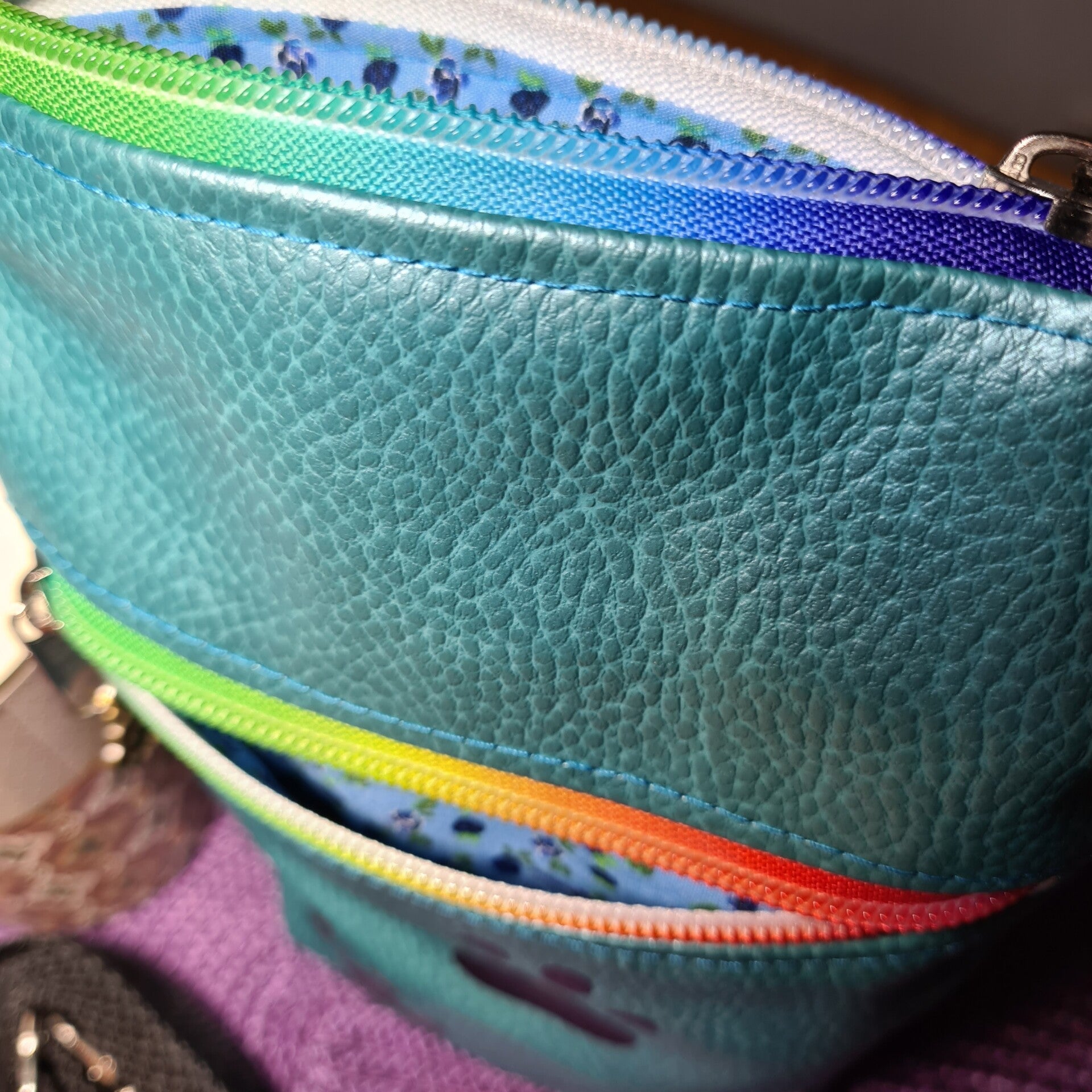 - Hochwertiges Material: Die Tasche besteht außen aus Mint-Metallic Kunstleder mit einem bunten Plott und einem Taäpsen Reißverschluss, während das Innenfutter aus 100% Baumwolle gefertigt ist.