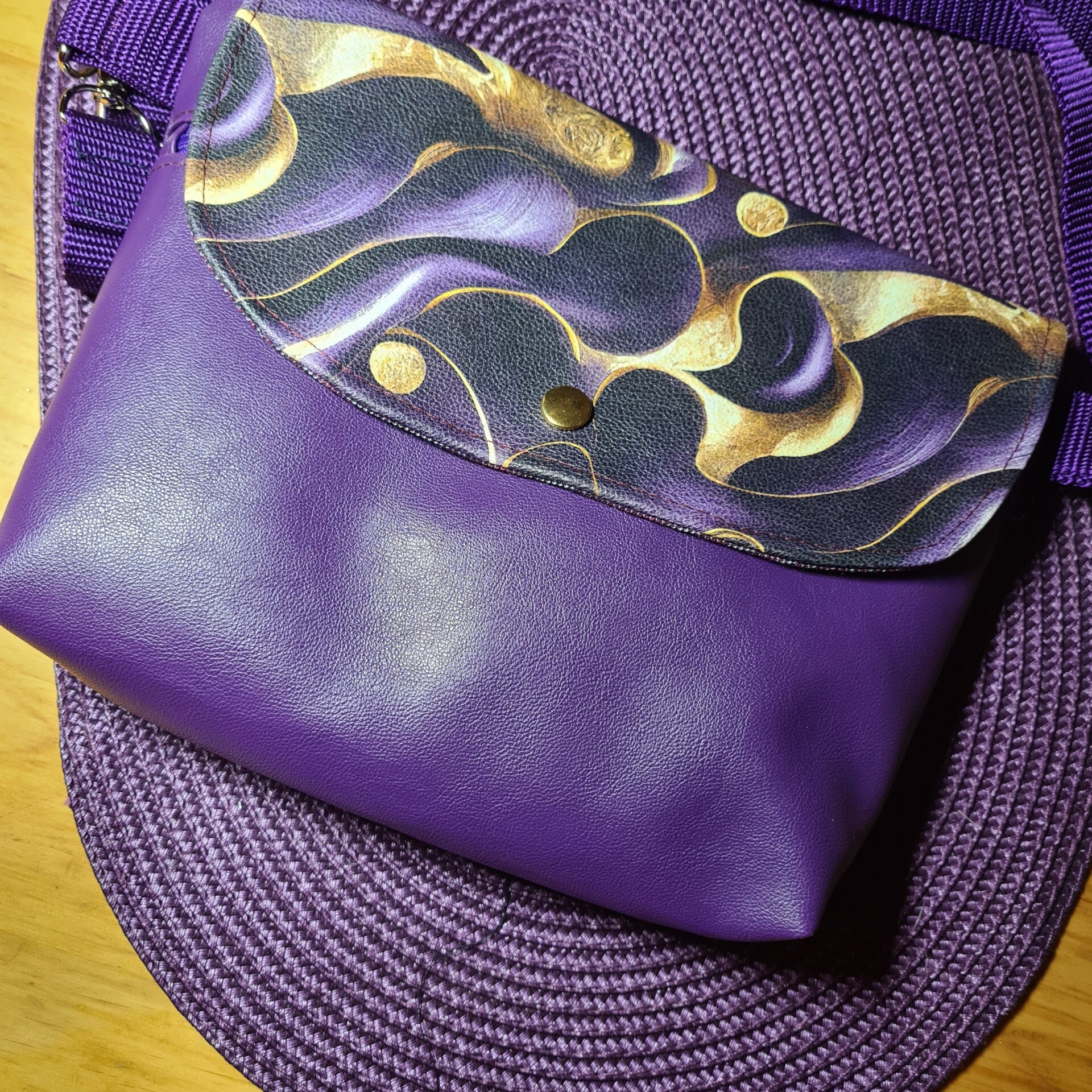 Elegante Umhängetasche in Lila-Gold - Handgefertigt und Unikat