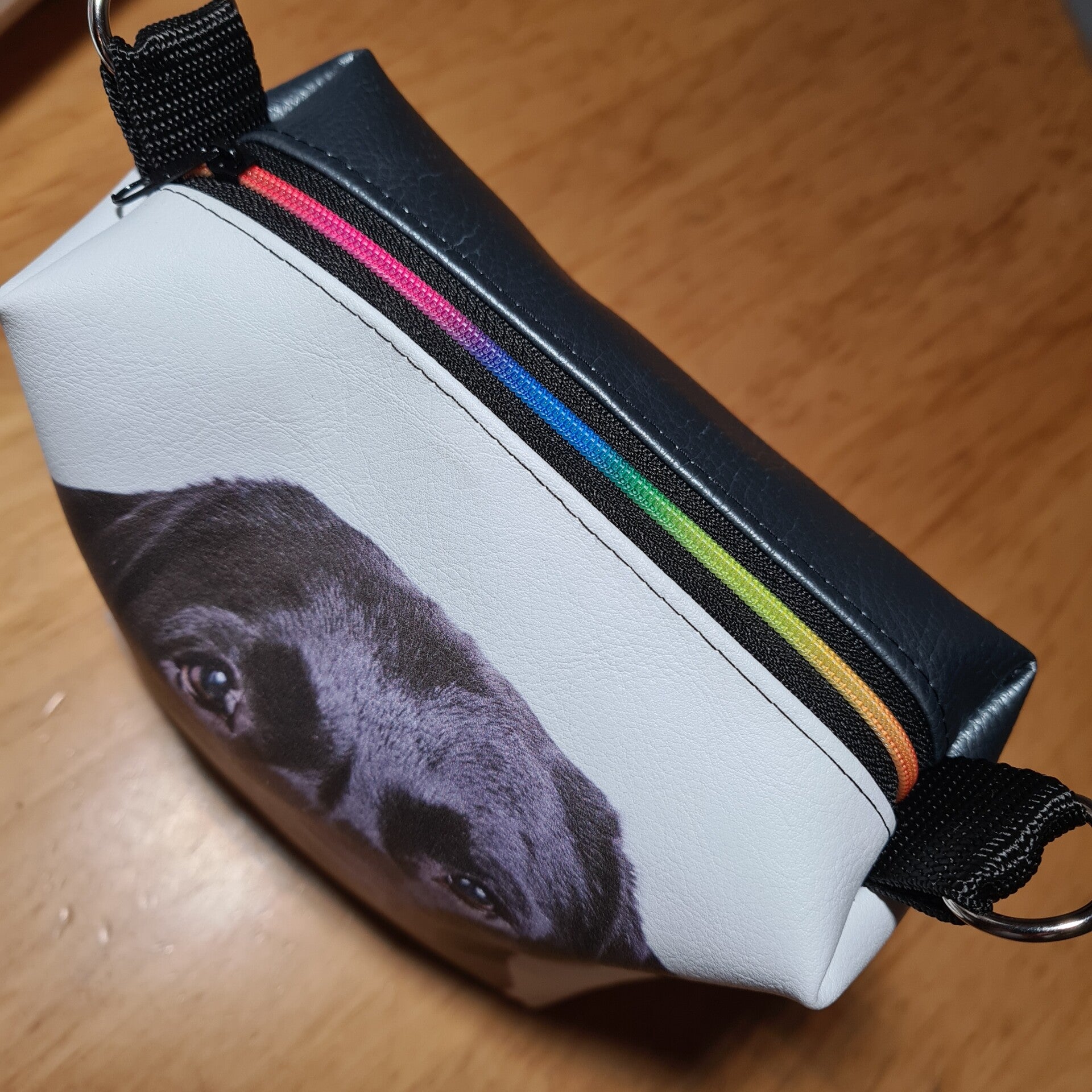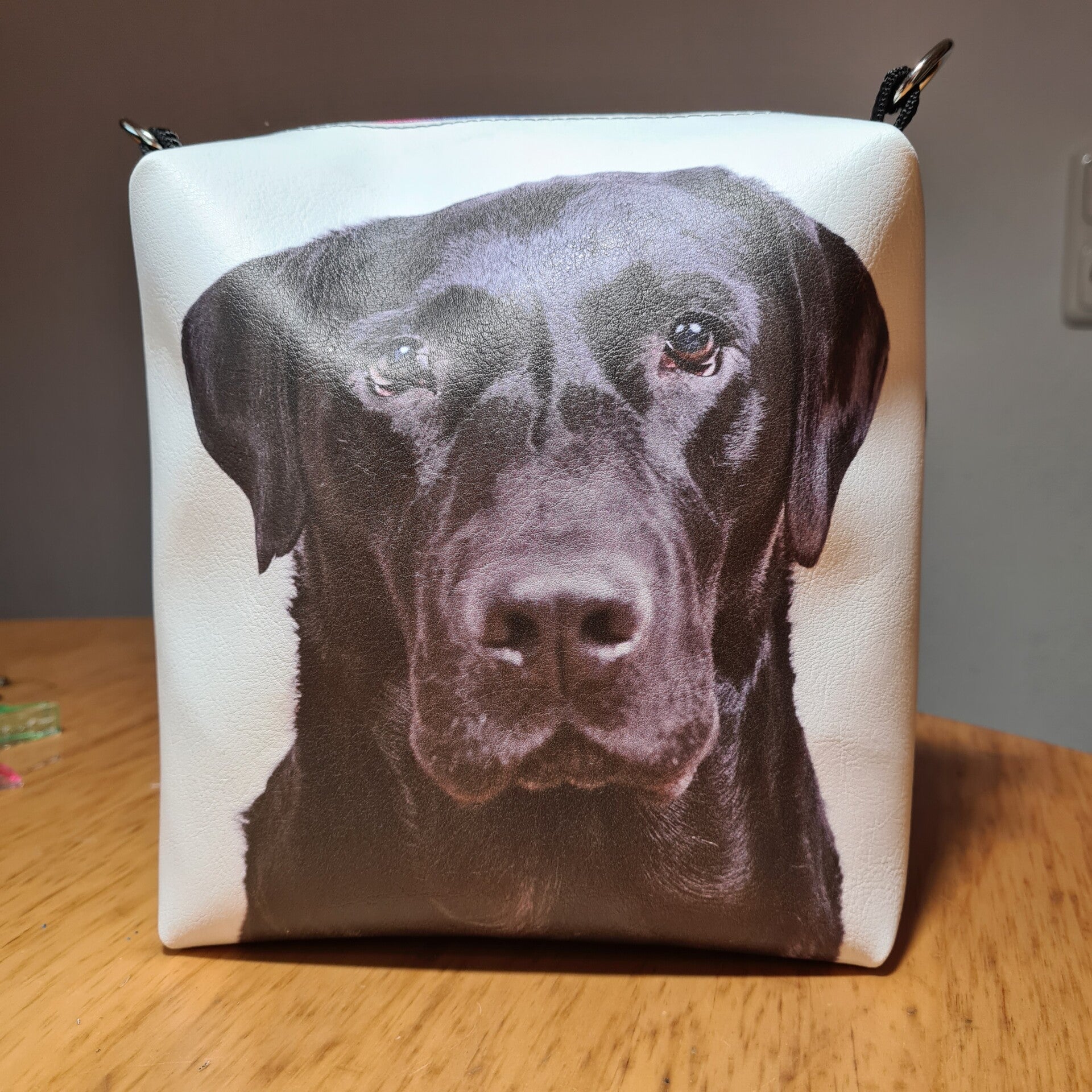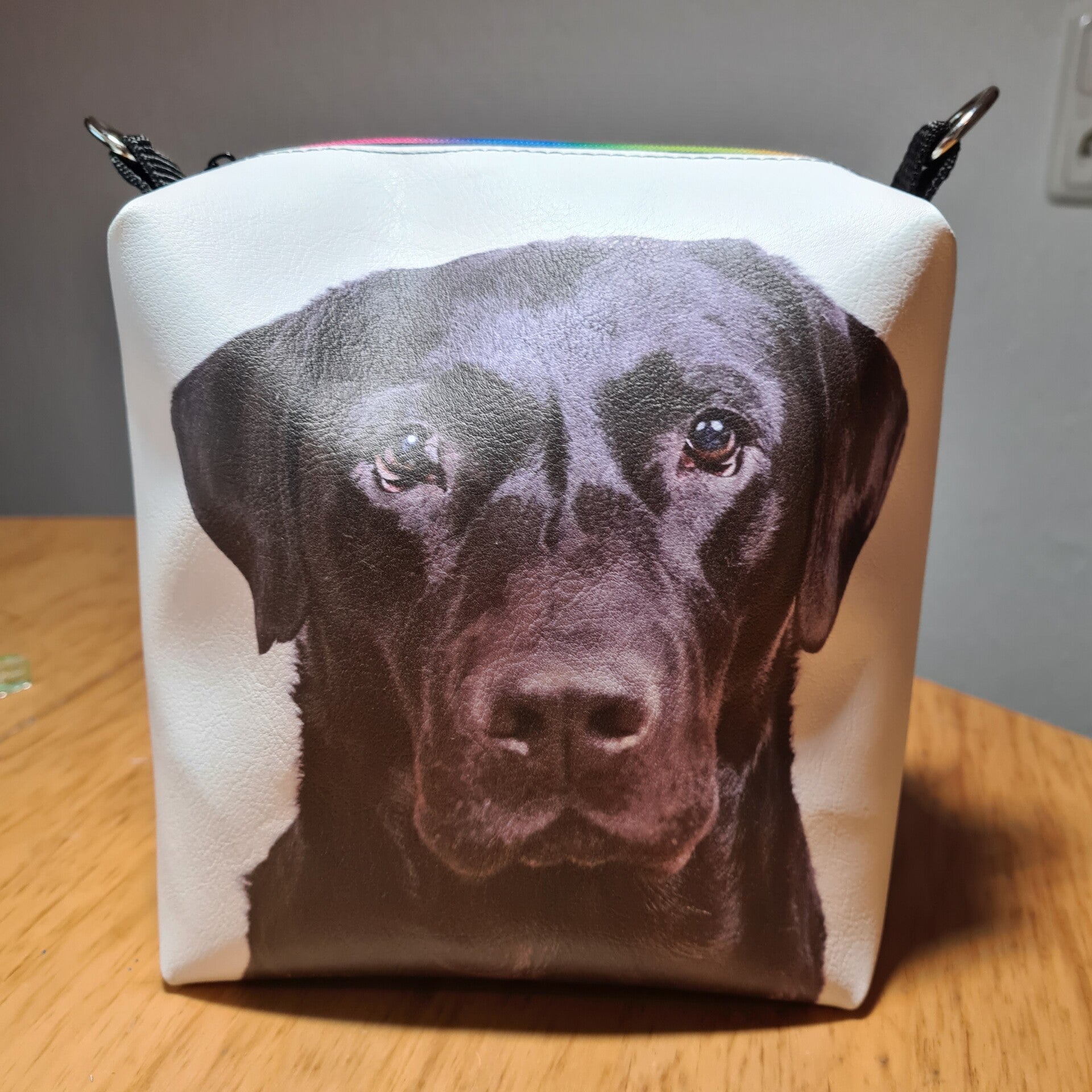 - Material: Anthrazit metallic Kunstleder für die Tasche, Panel mit Labrador Motiv