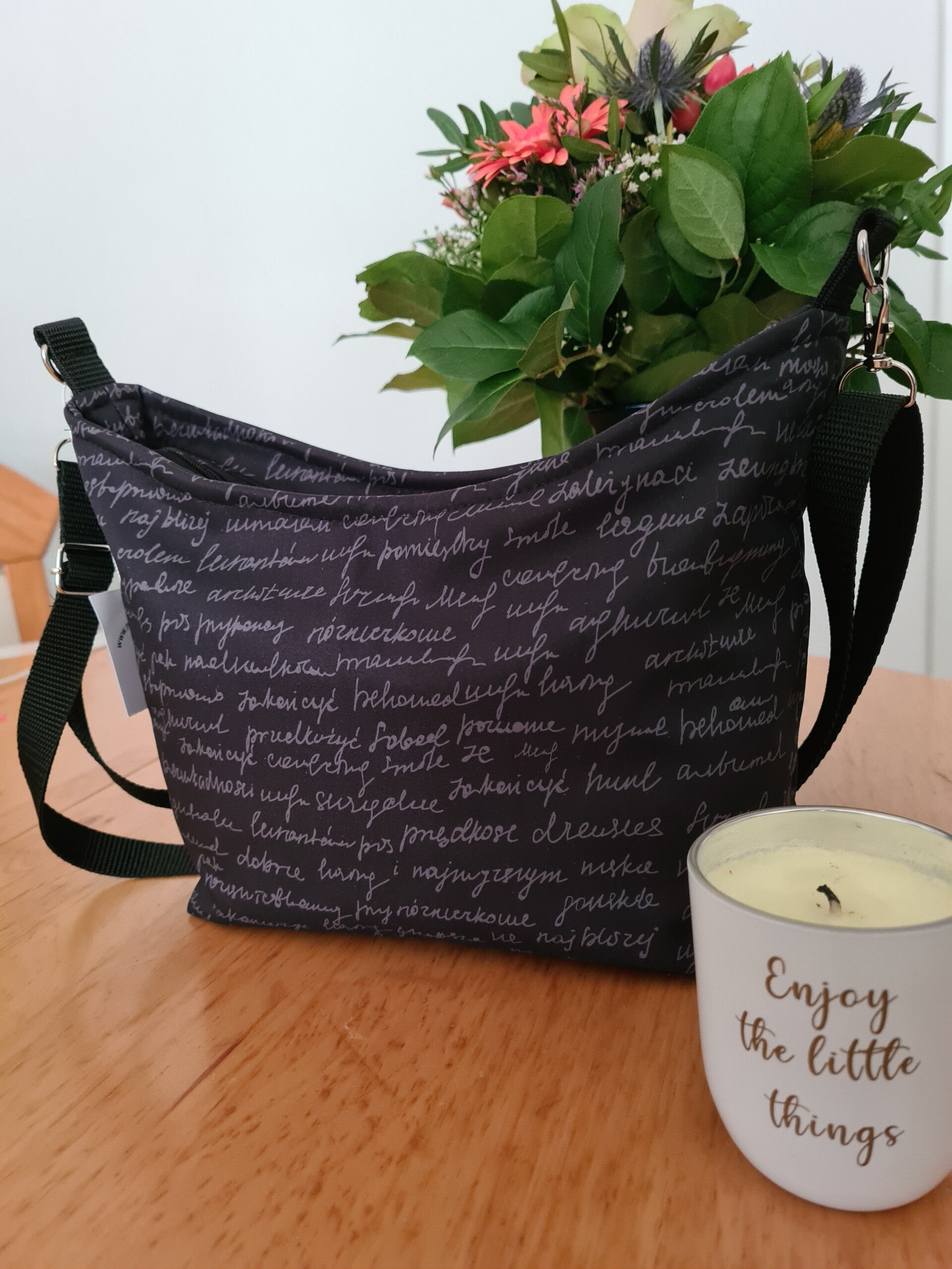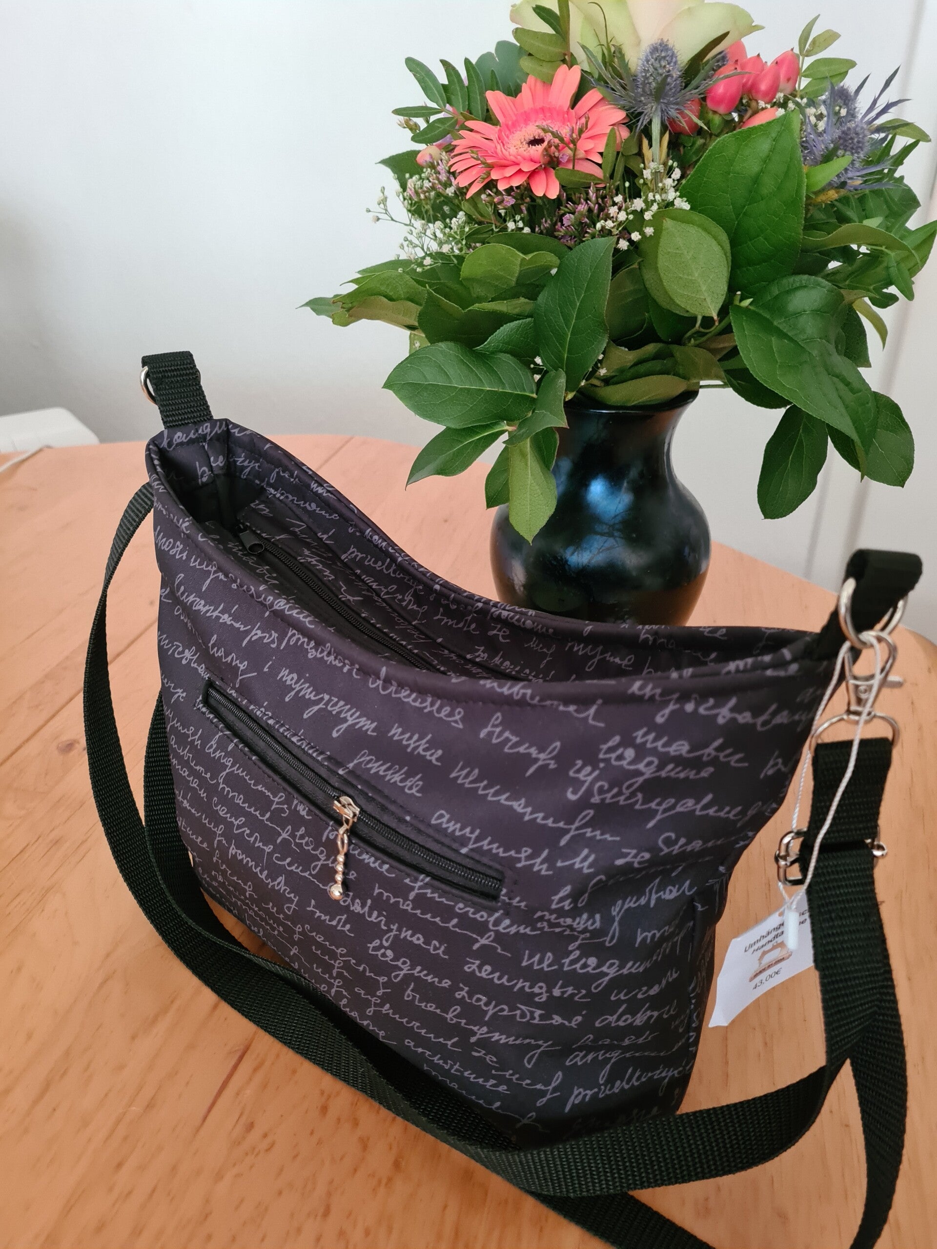 Handtasche Umhlngetasche, schwarz Schrift