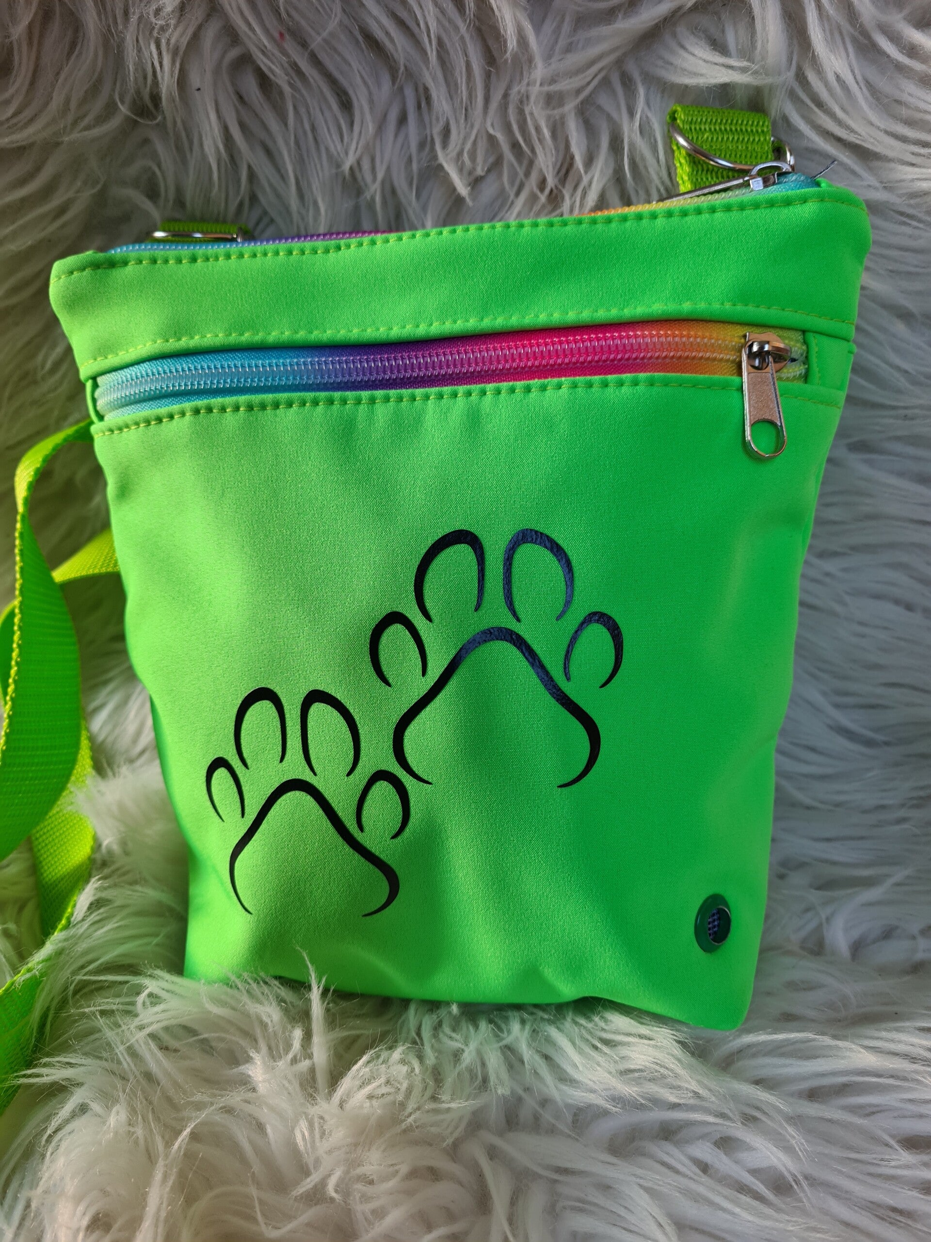 Die Gassitasche für Hundebesitzer ist das perfekte Accessoire für jede Gassirunde. Mit ihren praktischen Funktionen, dem robusten, neongrünen Softshell-Material und dem einzigartigen Dalmatiner-Motiv wird sie schnell zum unverzichtbaren Begleiter für deinen Hundespaziergang. Die Tasche bietet nicht nur viel Stauraum, sondern auch durchdachte Details, die den Alltag erleichtern.