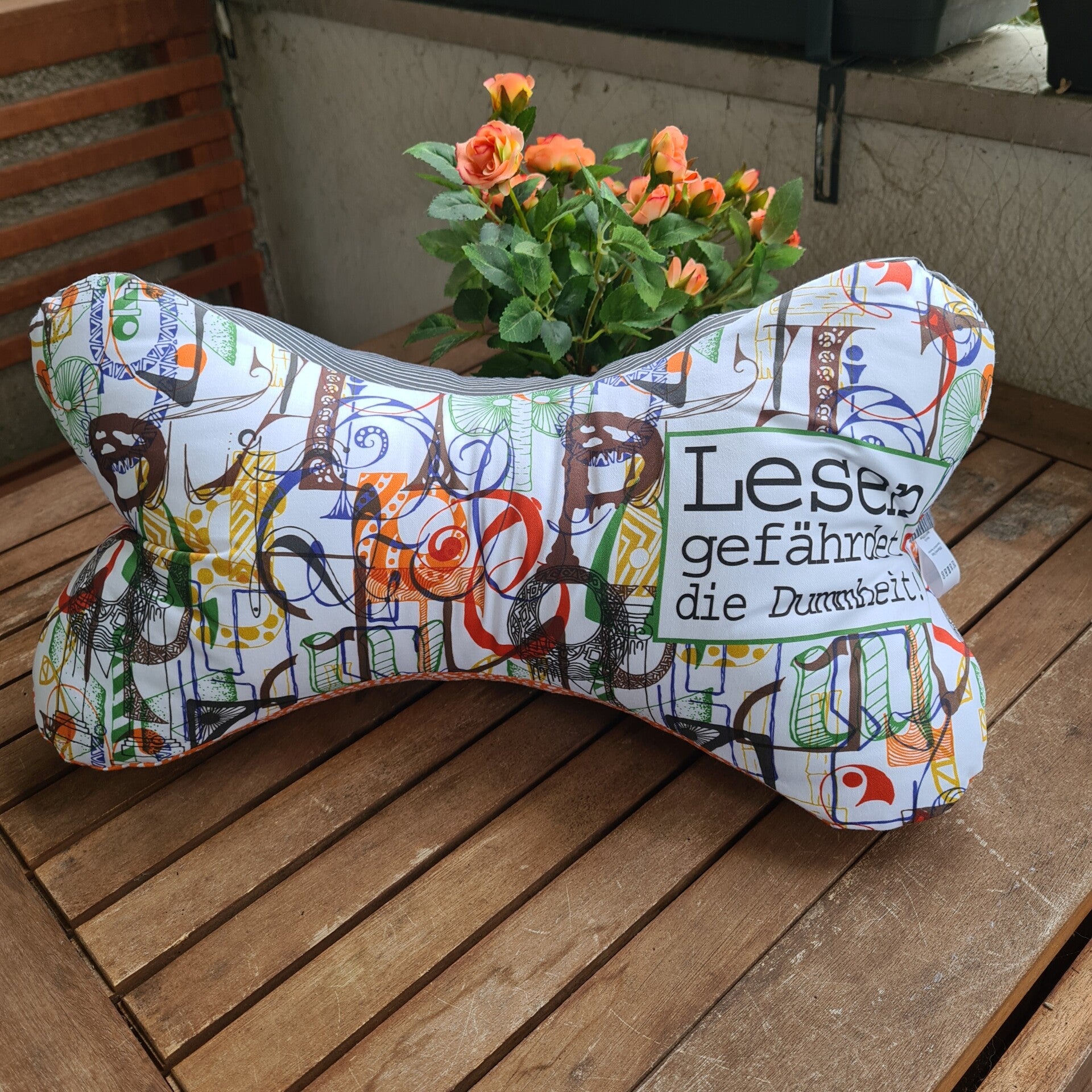Leseknochen / Nackenkissen Lesen gefährdet die Dummheit