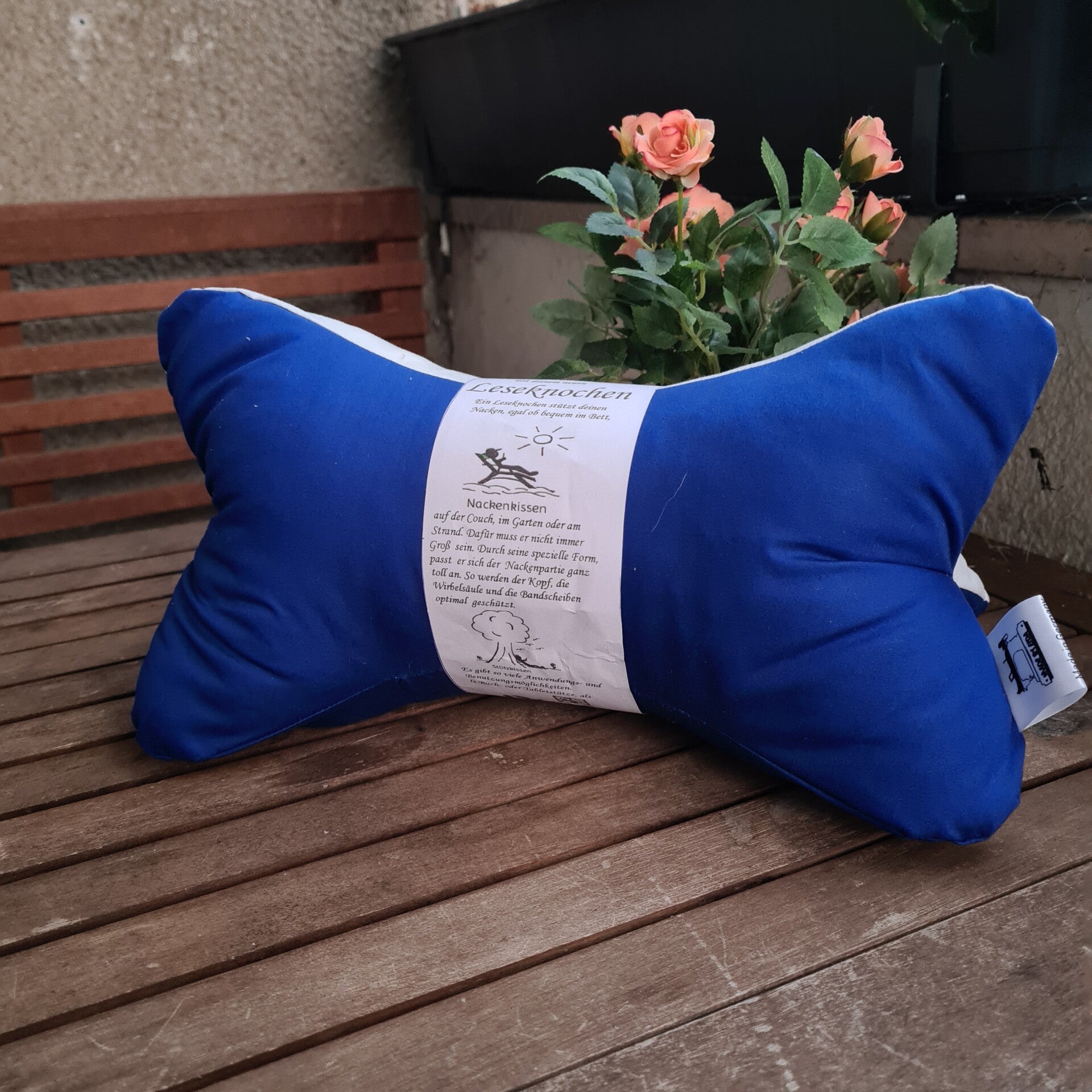 Keywords: Leseknochen, Nackenstütze, Handgefertigt, Rückenkissen, Reisekissen, Buchstütze, Tabletstütze, Baumwolle, Schaumstoff, Kinderkissen, Komfort, Entspannung, Multitalent, Pflegeleicht, Handarbeit, waschbar