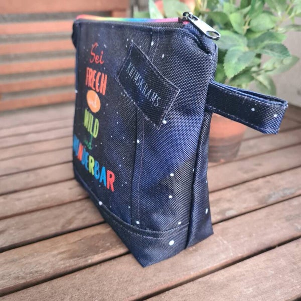 Kosmetiktasche "Sei frech und wild und wunderbar" – Krimskrambag | Wasserabweisend | Mehrfarbiger Reißverschluss | Lederheidi Design | 20x16