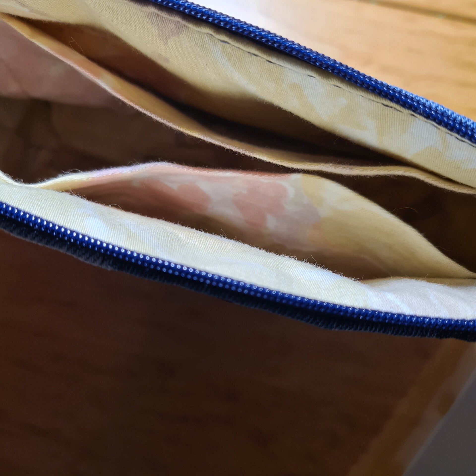 Diese handgefertigte Jeanstasche im Patchwork-Design ist ein einzigartiges Unikat aus recycelten Jeansstoffen. Mit viel Liebe zum Detail genäht, kombiniert sie verschiedene Blautöne in einem stilvollen, modernen Look. Die praktische Größe von 14 x 22 x 3 cm macht sie perfekt als Kosmetiktasche, Federmäppchen, Reisetasche oder Organizer für die Handtasche.