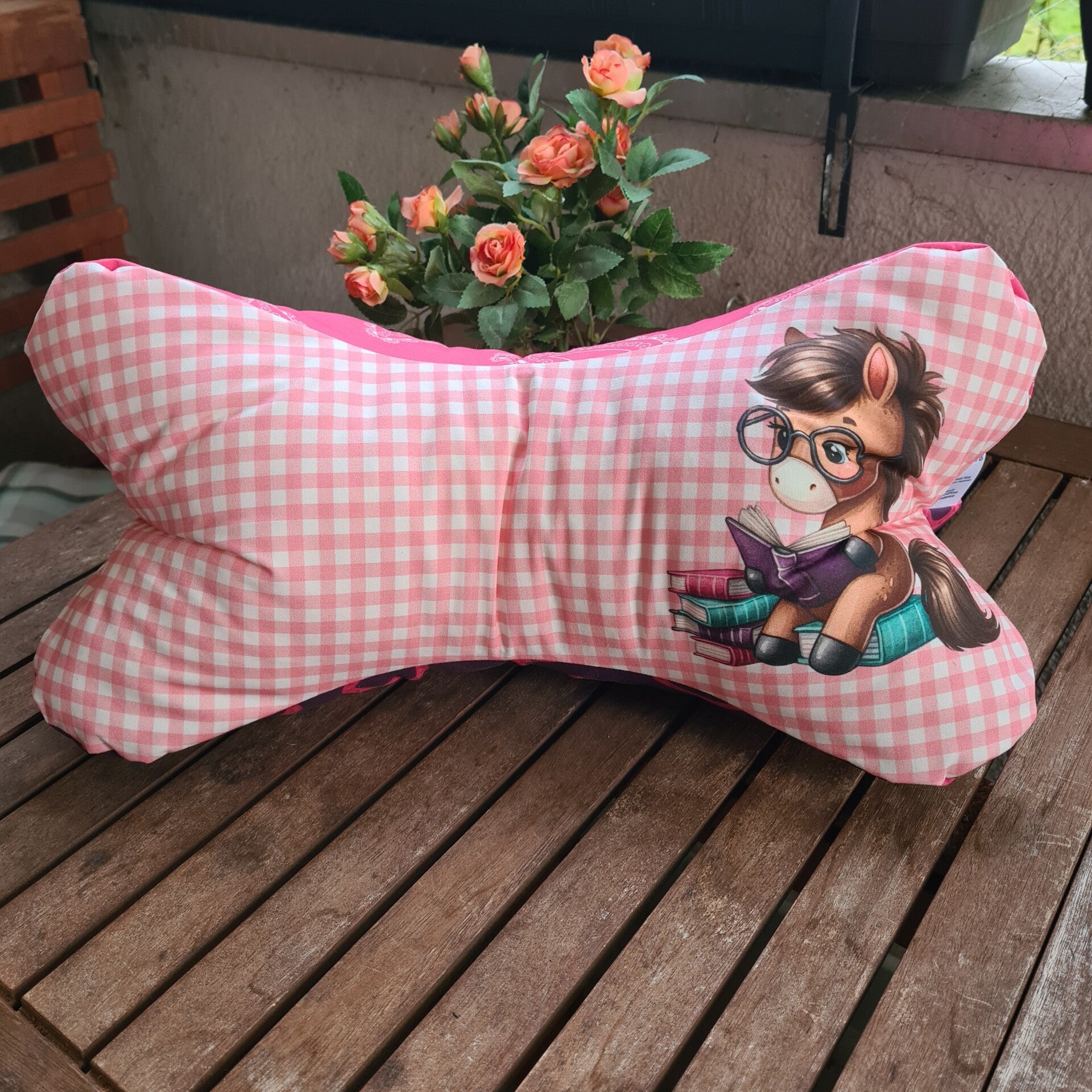 Leseknochen Kissen – 42x18 cm – Baumwolle mit süßem Pferdemotiv, Füllung aus Schaumstofflocken & Polyesterfasern Geschenk für Leser
