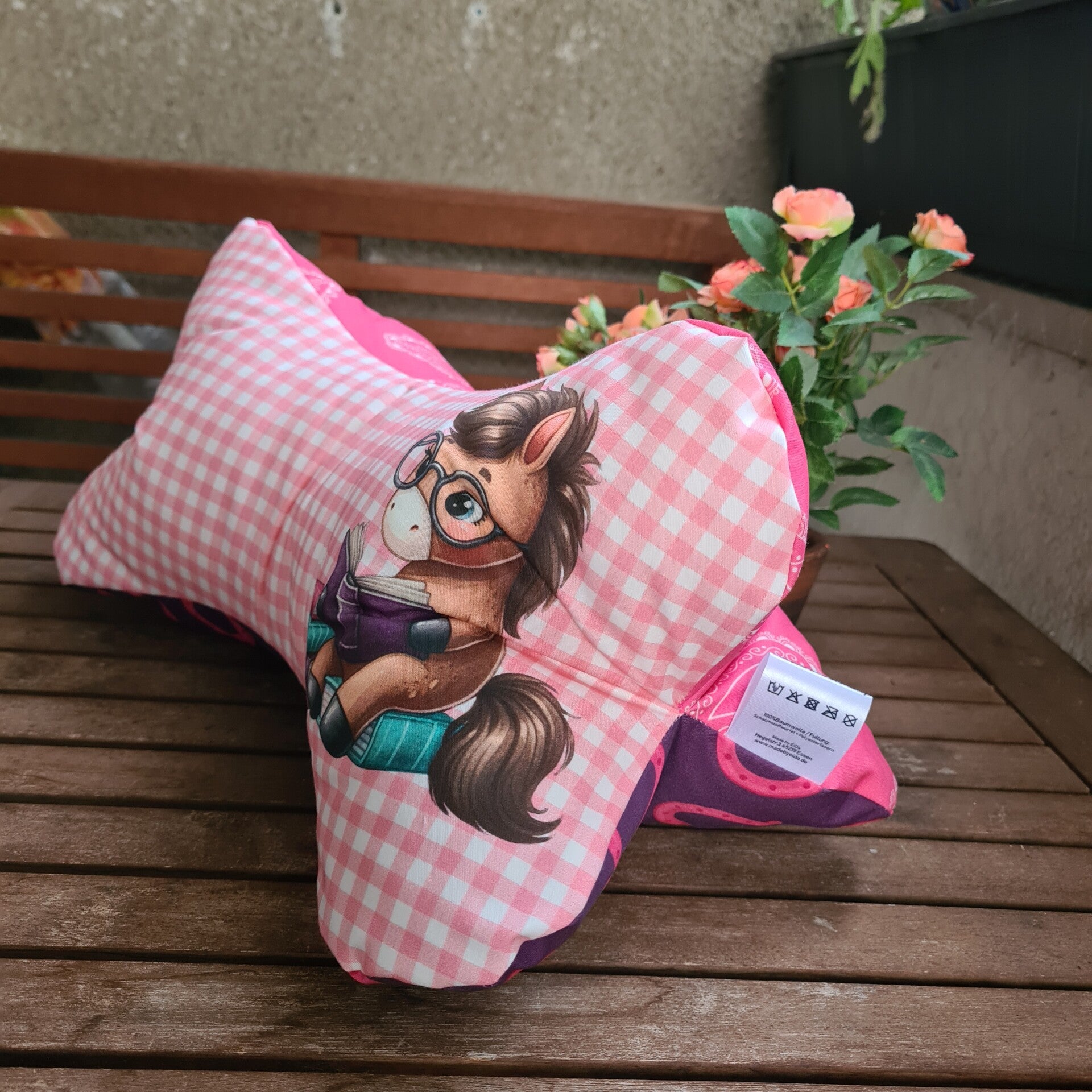 Ein vielseitiges Kissen, das sich als Geschenk wunderbar eignet – ob für Leseratten, Pferdeliebhaber oder einfach zum Entspannen.