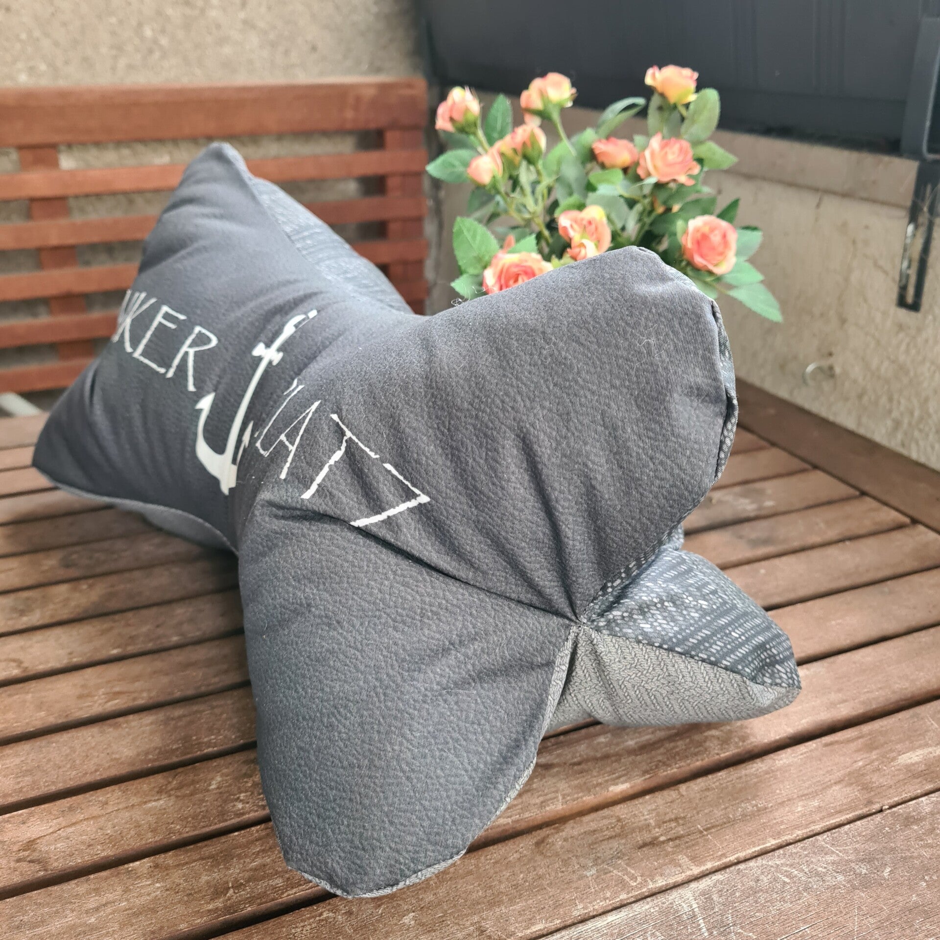 Leseknochen Kissen „Ankerplatz“ 42x18 cm – maritimes Nackenkissen aus 100% Baumwolle – Buchstützkissen, Geschenkidee für Küstenliebhaber